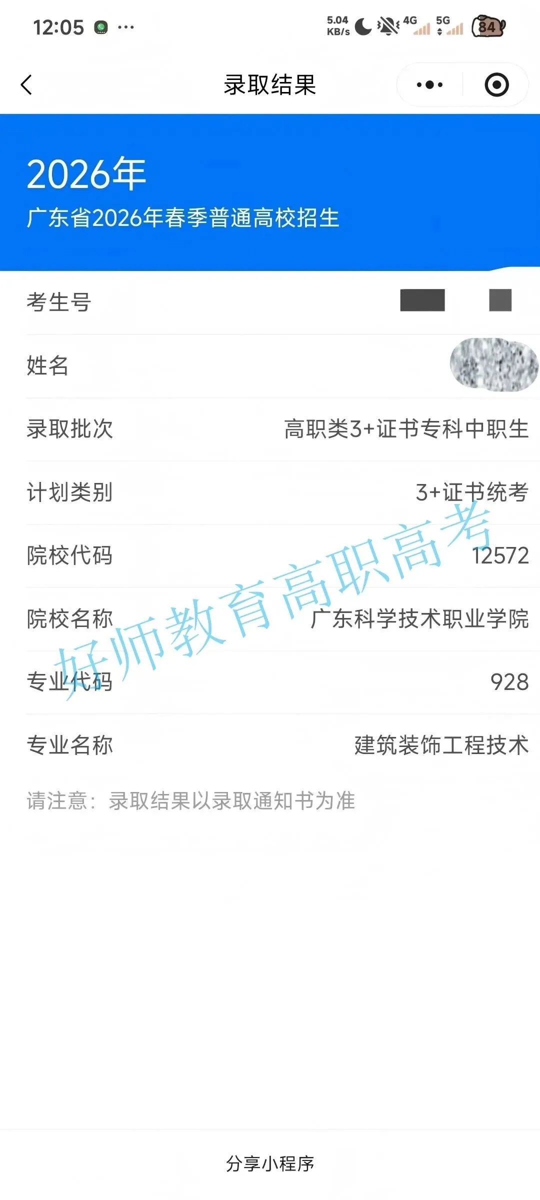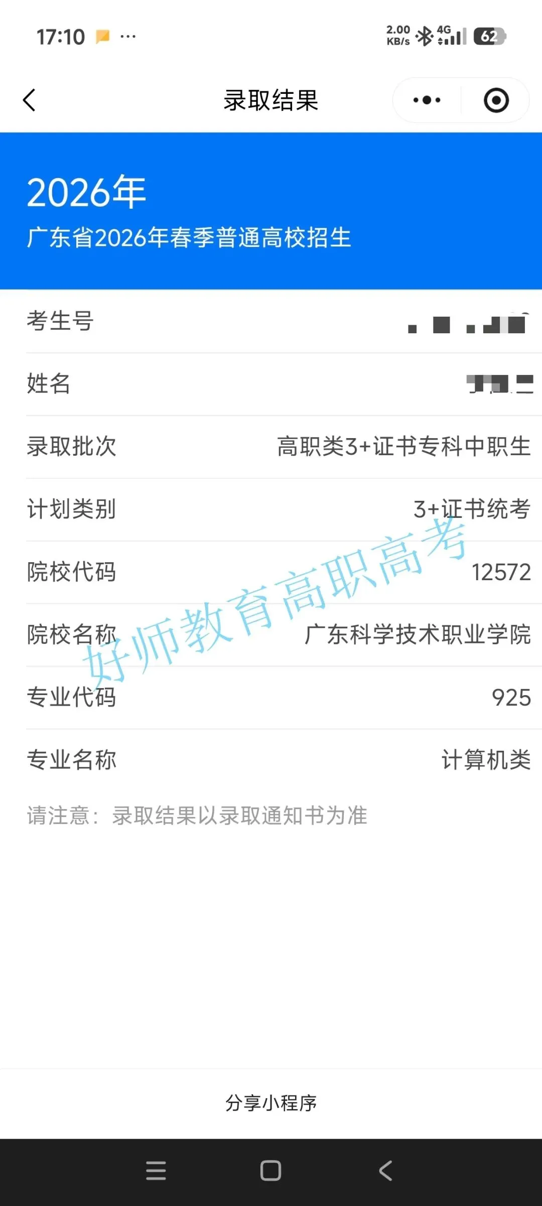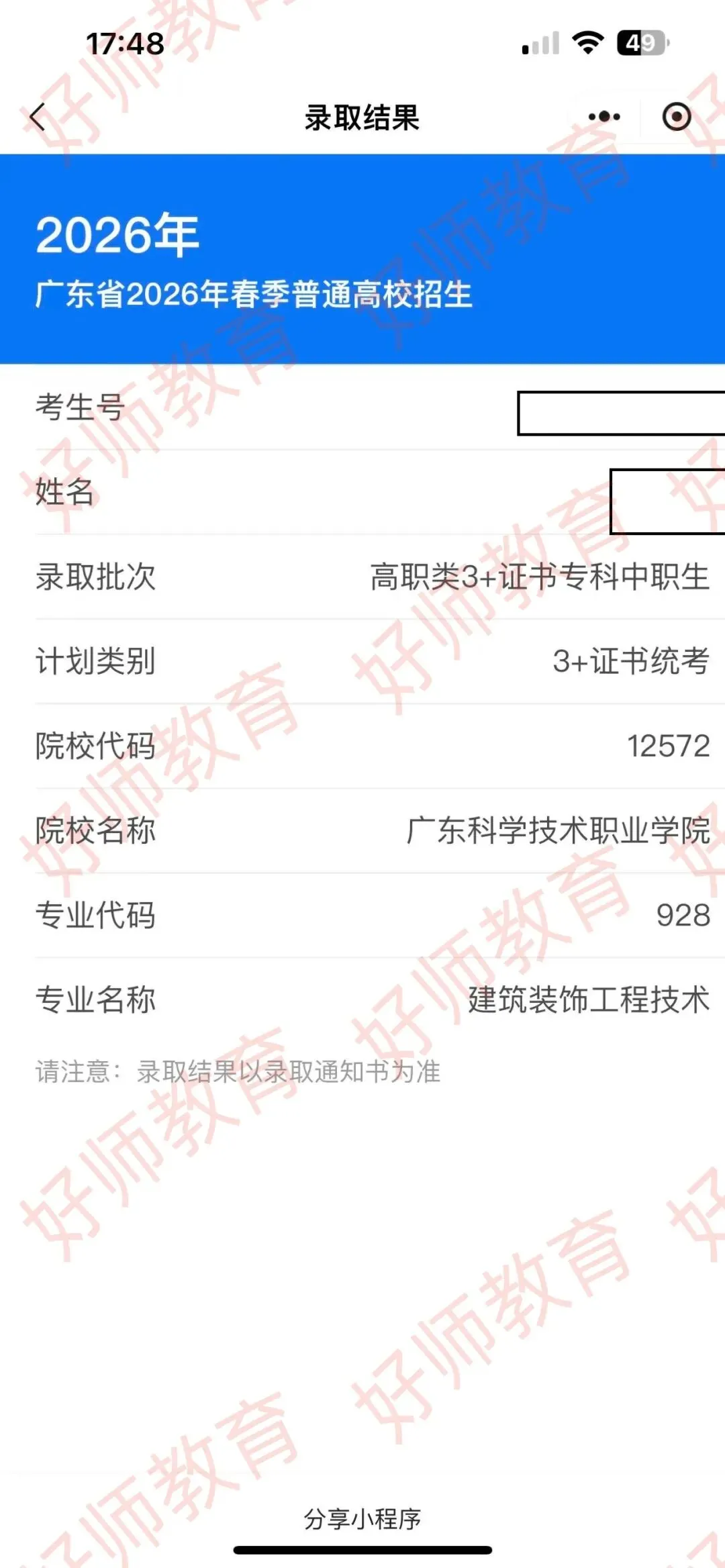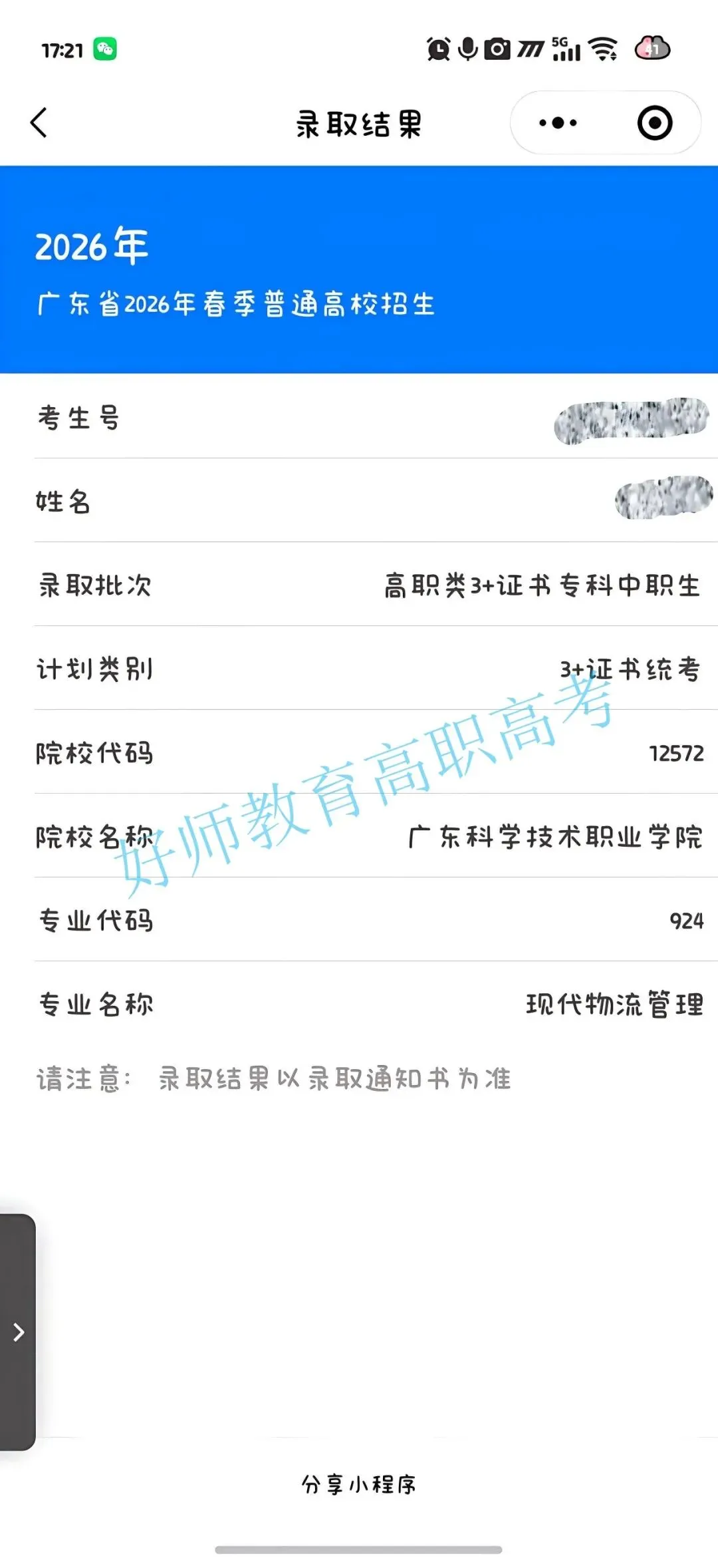 录取到广东科学职业技术学院!