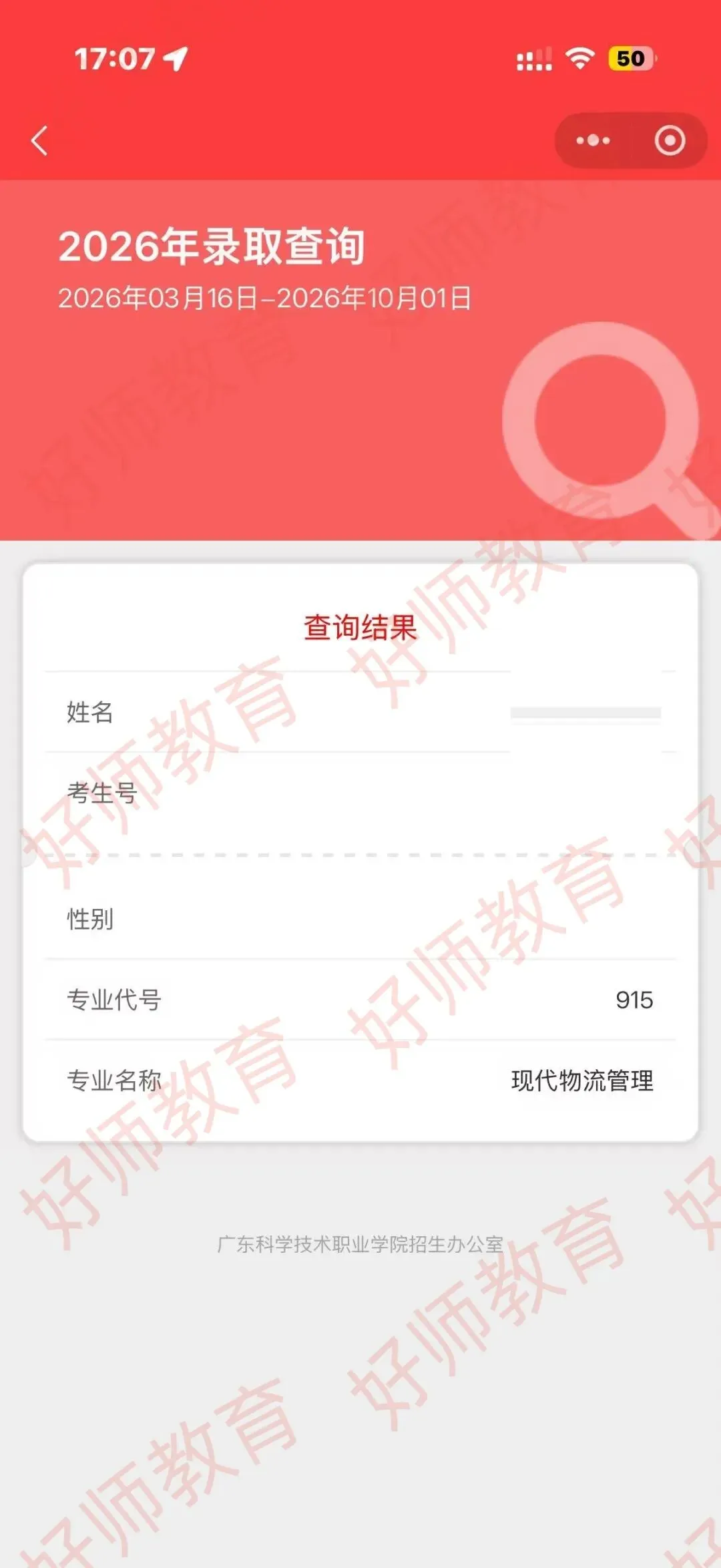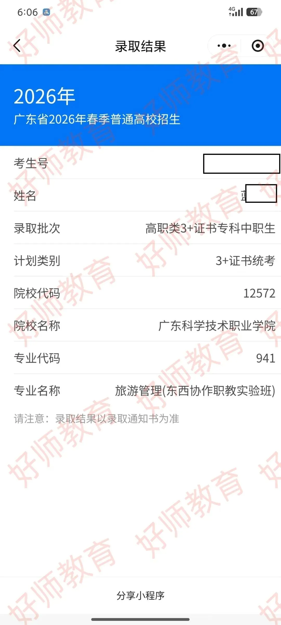 好师学生2026年录取广科