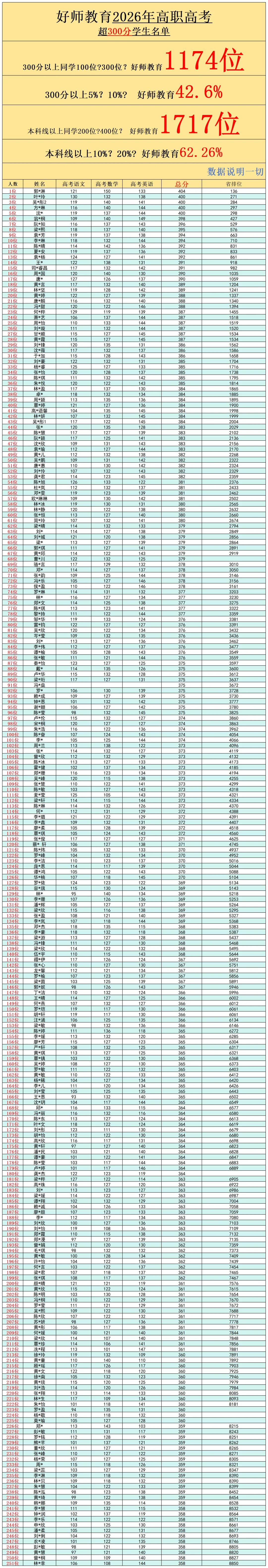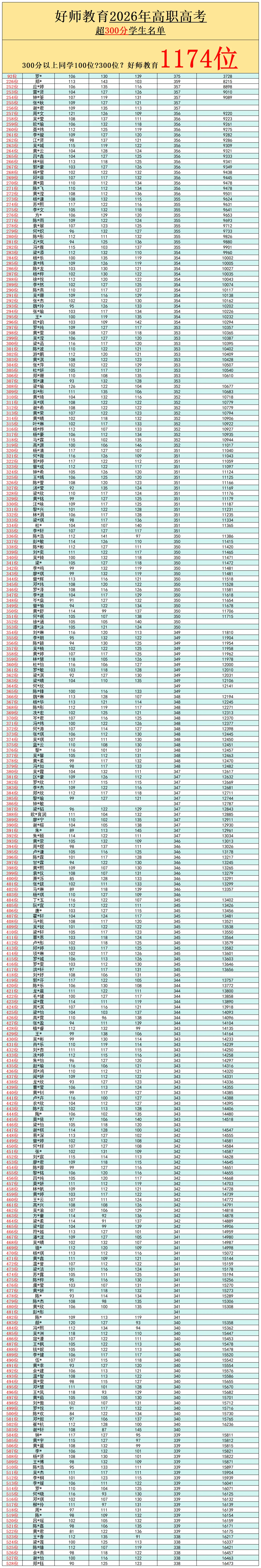 好师今年有1174位学生过300分!