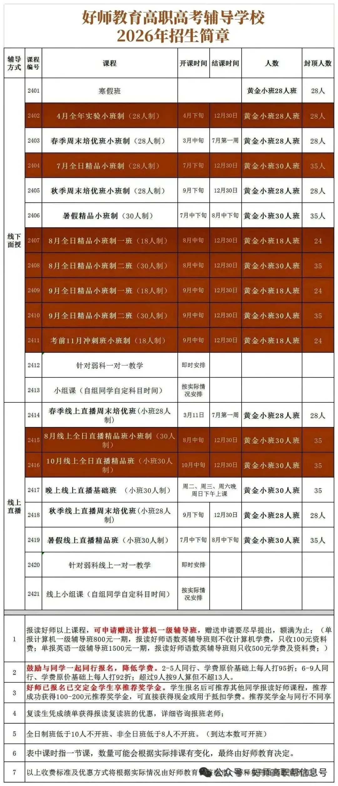 除线下班、好师也有线上全日制班