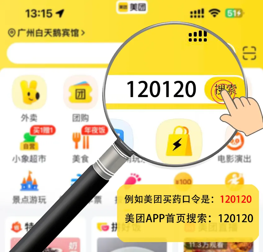美团买药官方活动,美团首页搜索 120120 领取买药优惠券!
