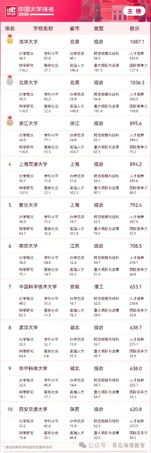 2026年4月15日,高等教育专业评价机构软科正式发布“2026软科中国大学排名”。