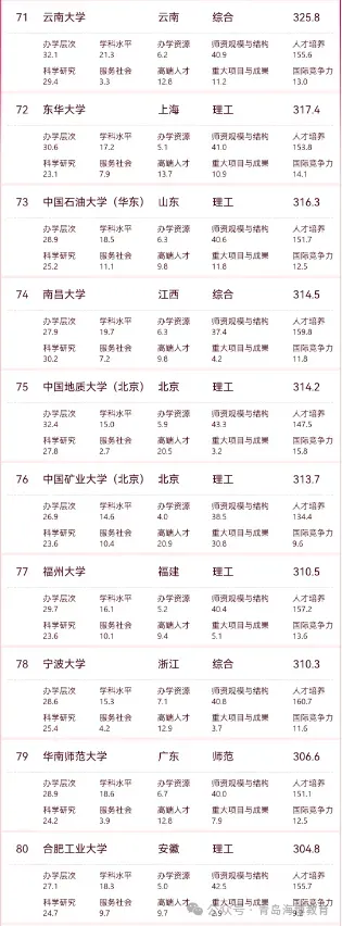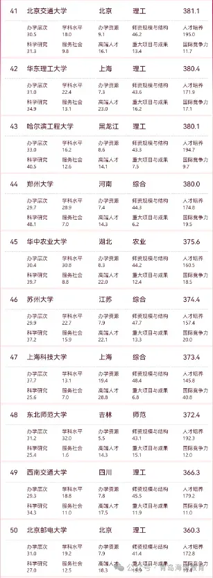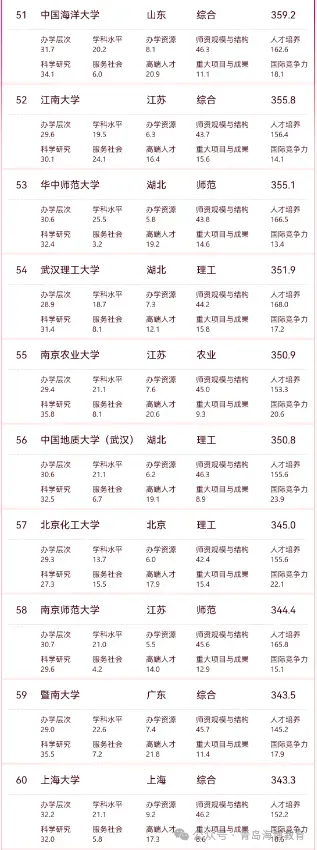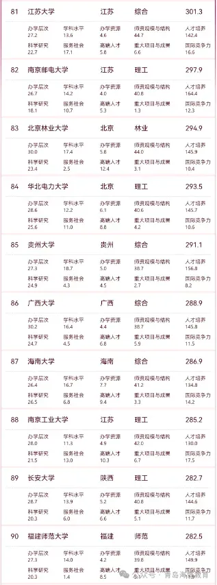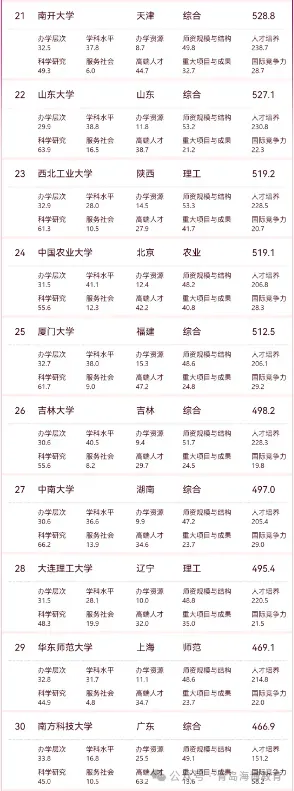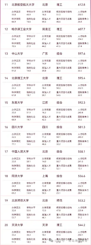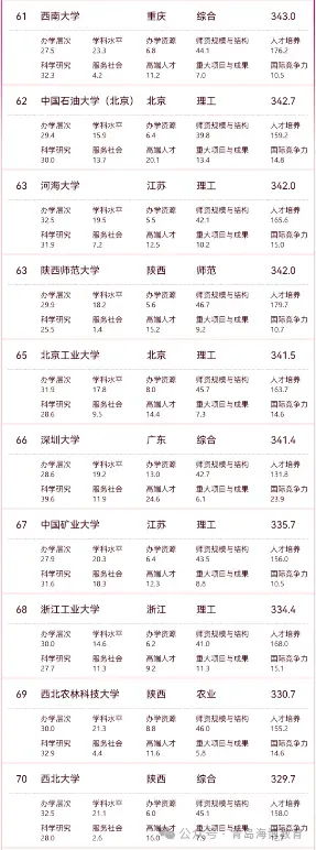 (注:主榜覆盖综合类、理工类、师范类、农业类、林业类院校。)