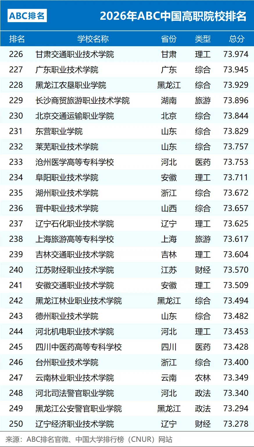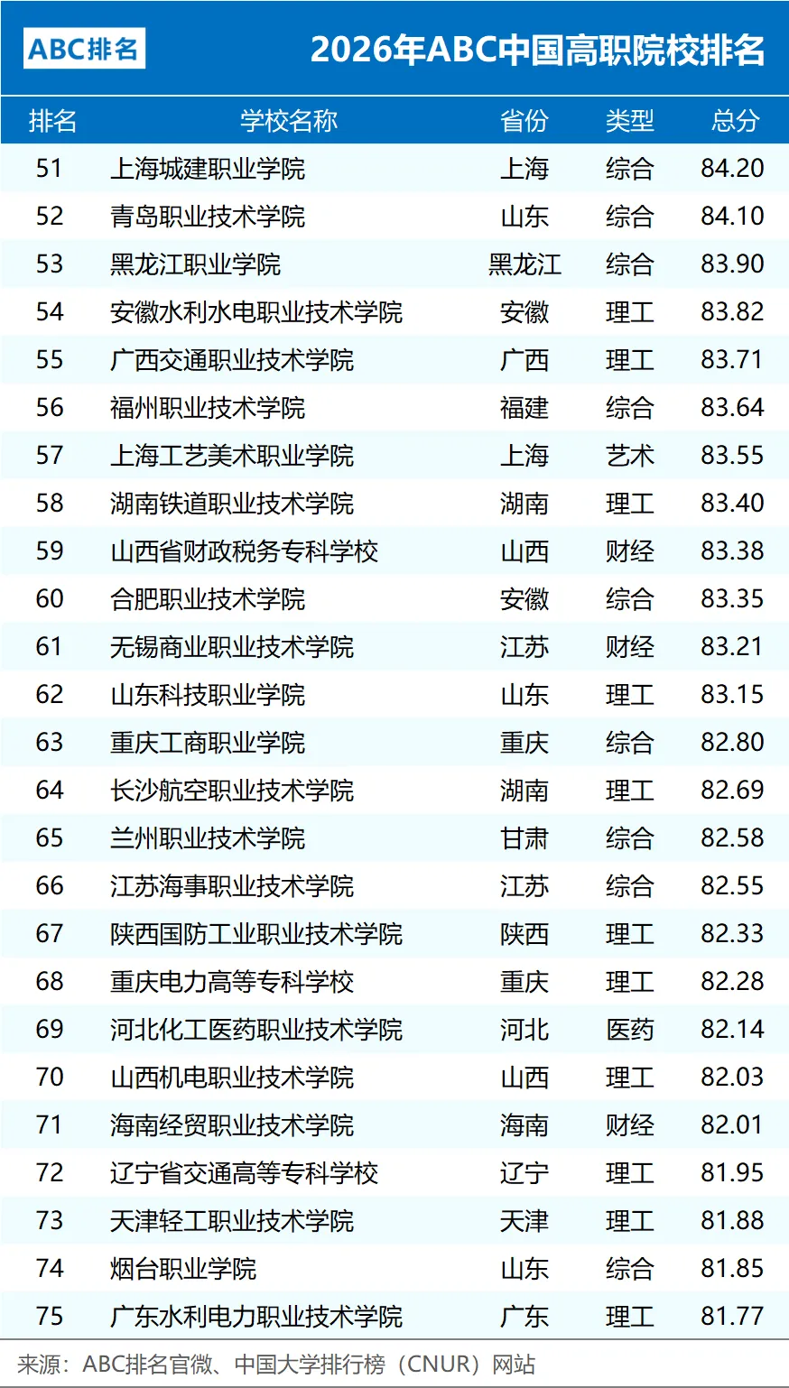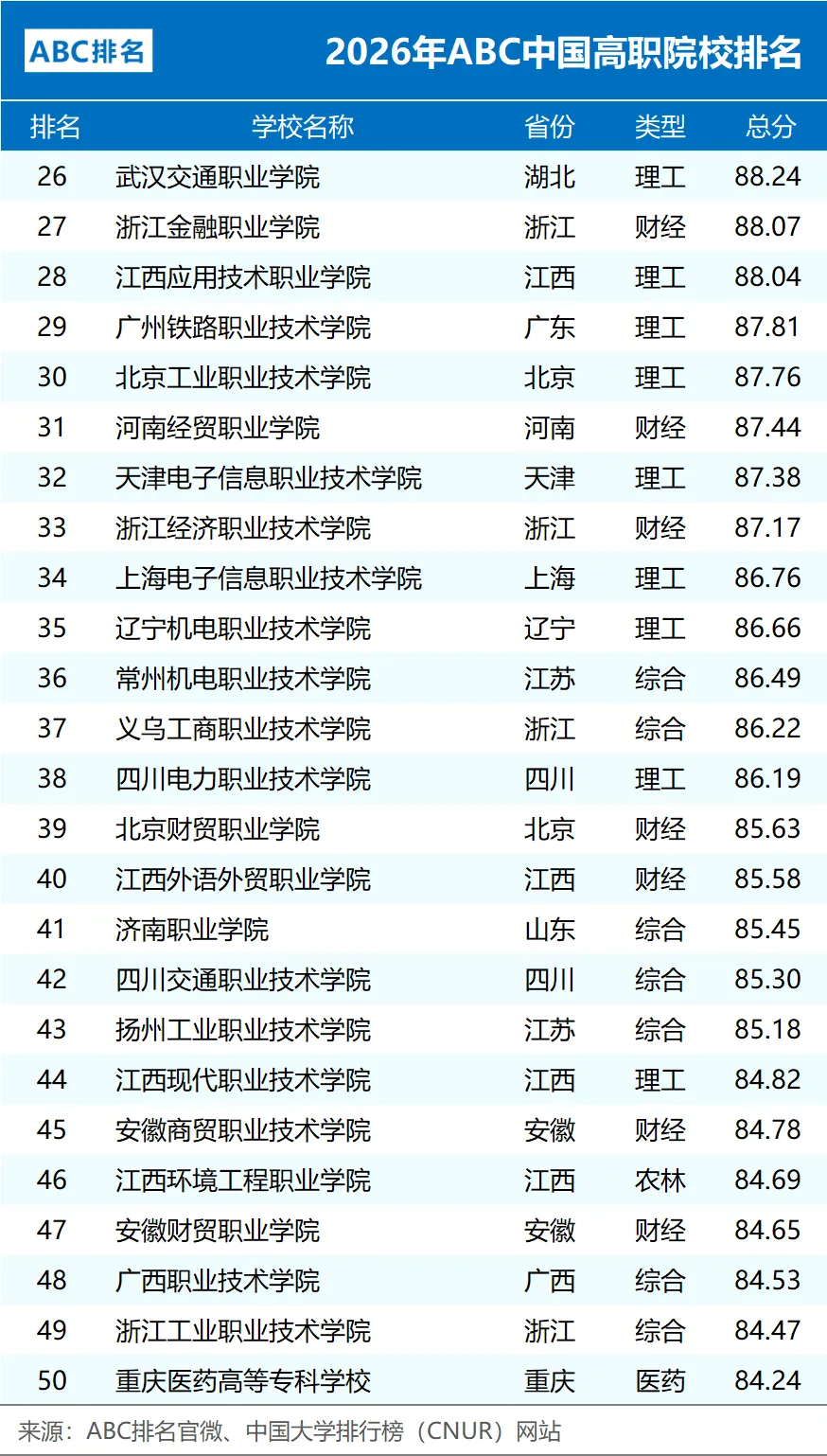 2026年ABC中国高职院校排名