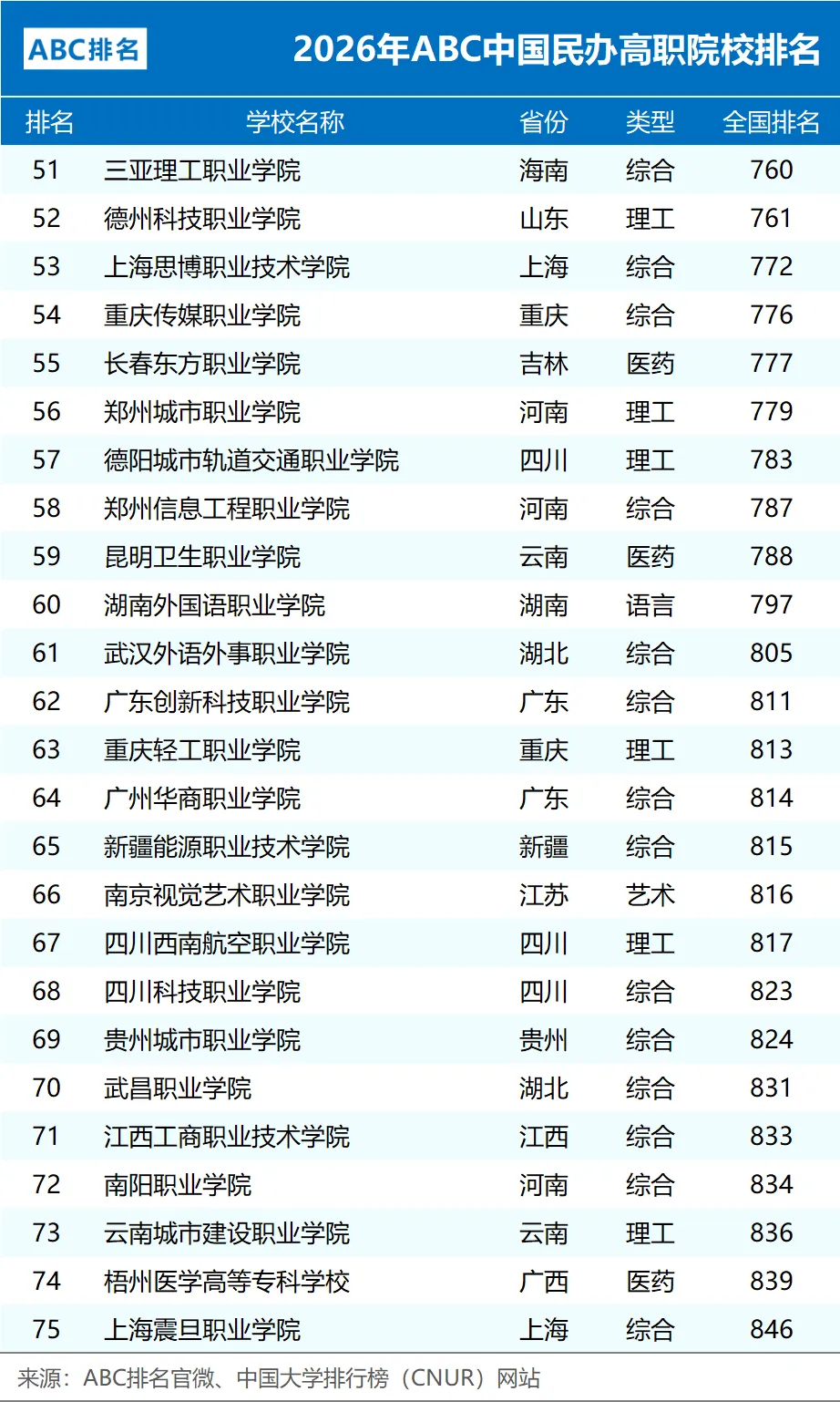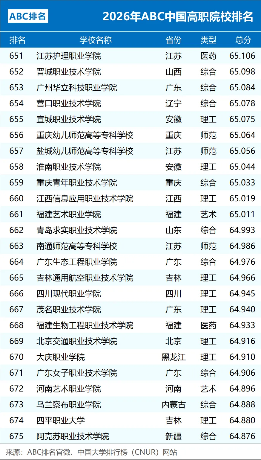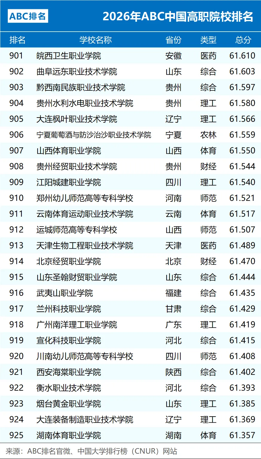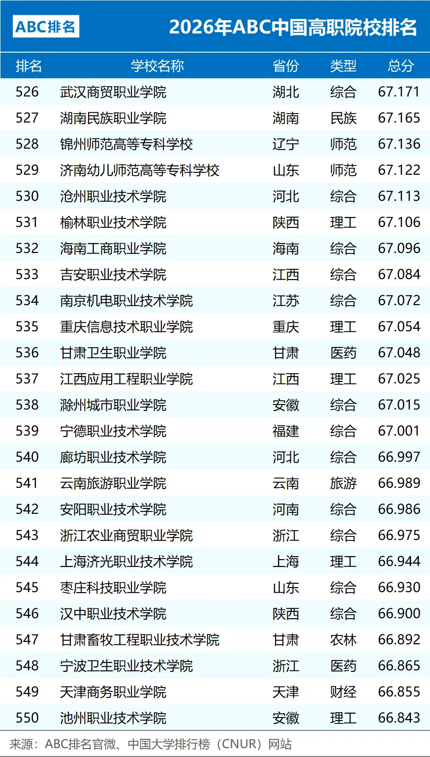 2026年ABC中国高职院校排名