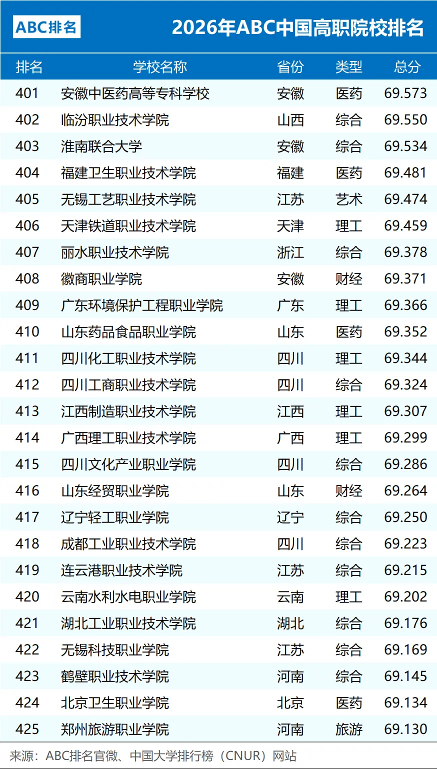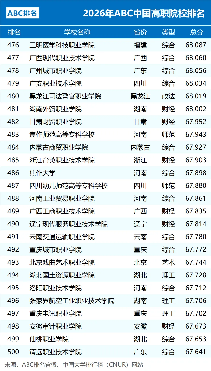 编制:中国大学排行榜(CNUR)网站、ABC排名官微