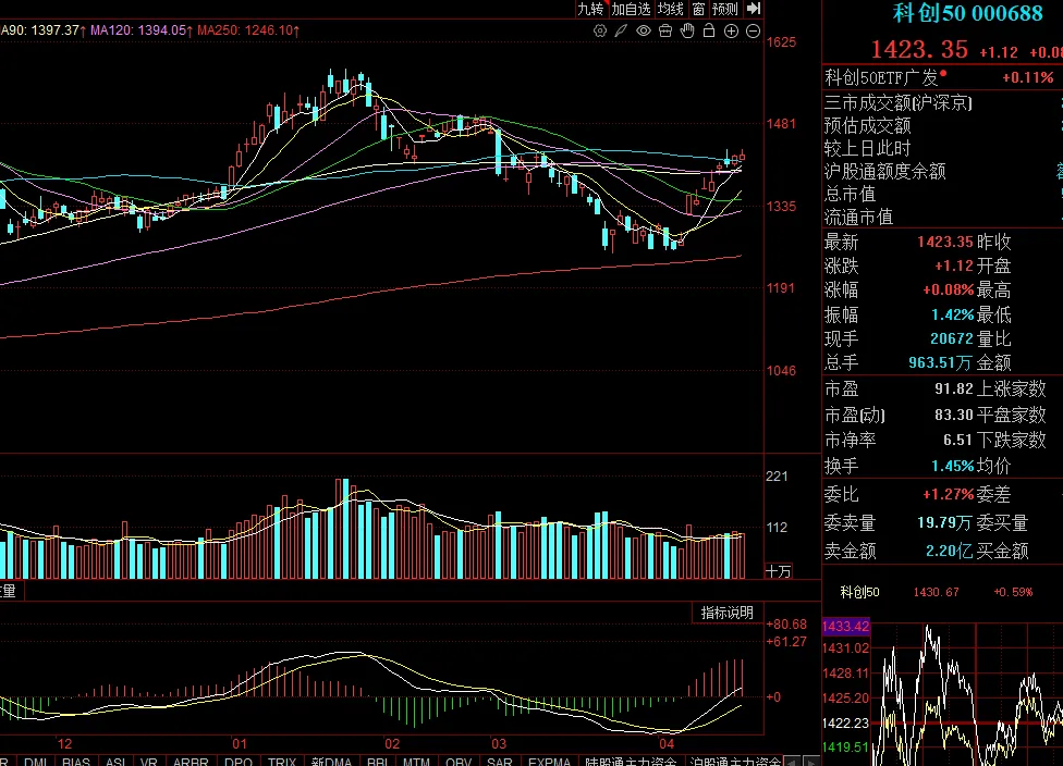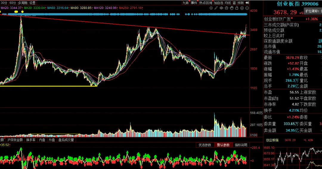创业板无异是最靓的仔,4月初只是小幅跌破MA90和MA120,随后迅速拉回,随后不断创出新高,并且量能尚可