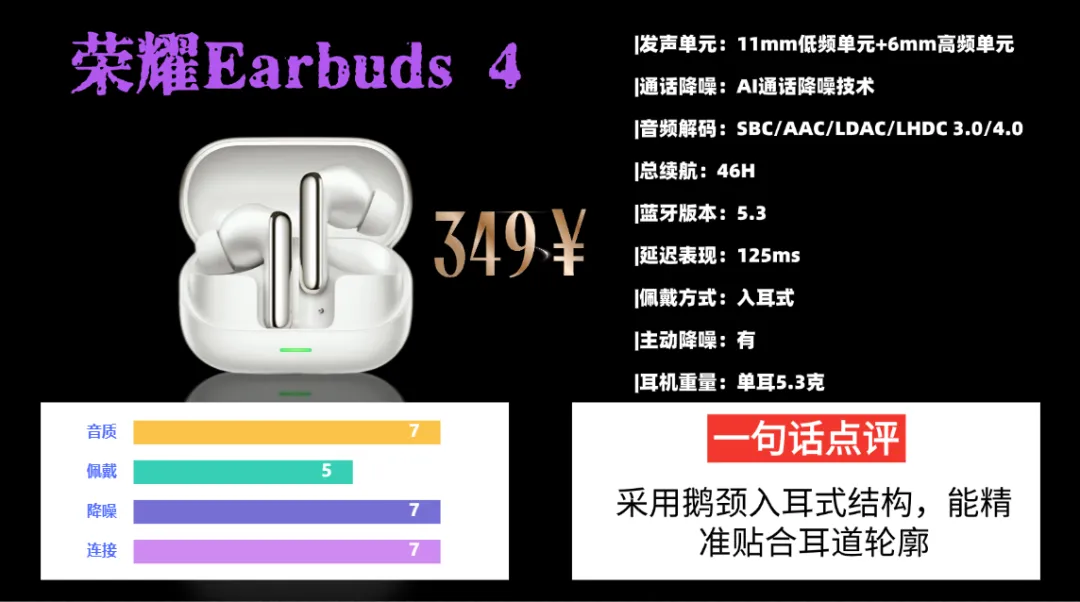 品牌五、荣 耀E arbuds 4蓝牙耳机