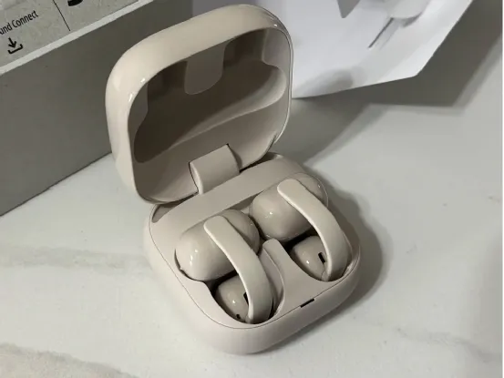 声音部分搭载 10mm 大尺寸驱动单元,配合定向发声技术,整体听感自然均衡,低频扎实有力度,三频过渡顺滑自然,搭配数字声音增强引擎,能把音乐里丢失的细节重新补齐,更接近原声效果。360 度环绕音效进一步提升沉浸感,在同类型耳夹耳机中,音质属于第一梯队水平。