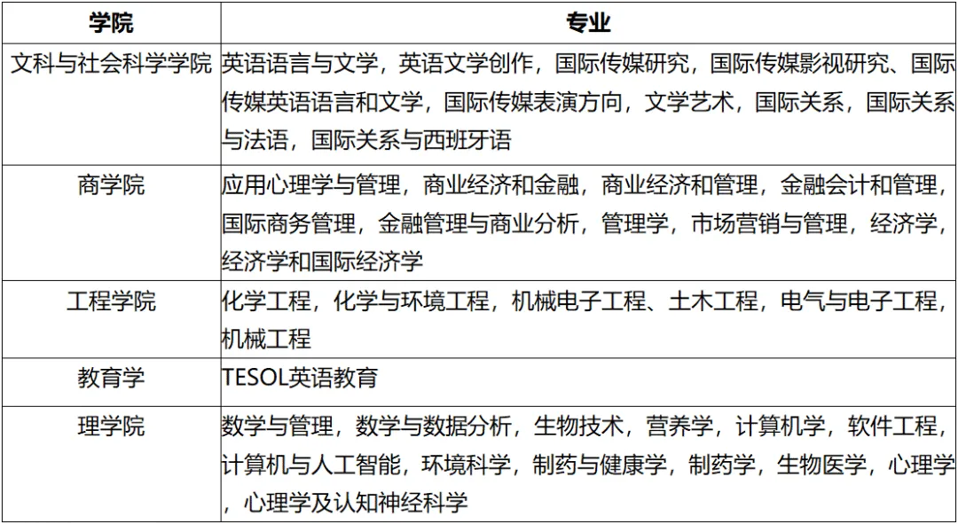 - 商科与管理类:国际商务管理、金融会计与管理、经济学等。