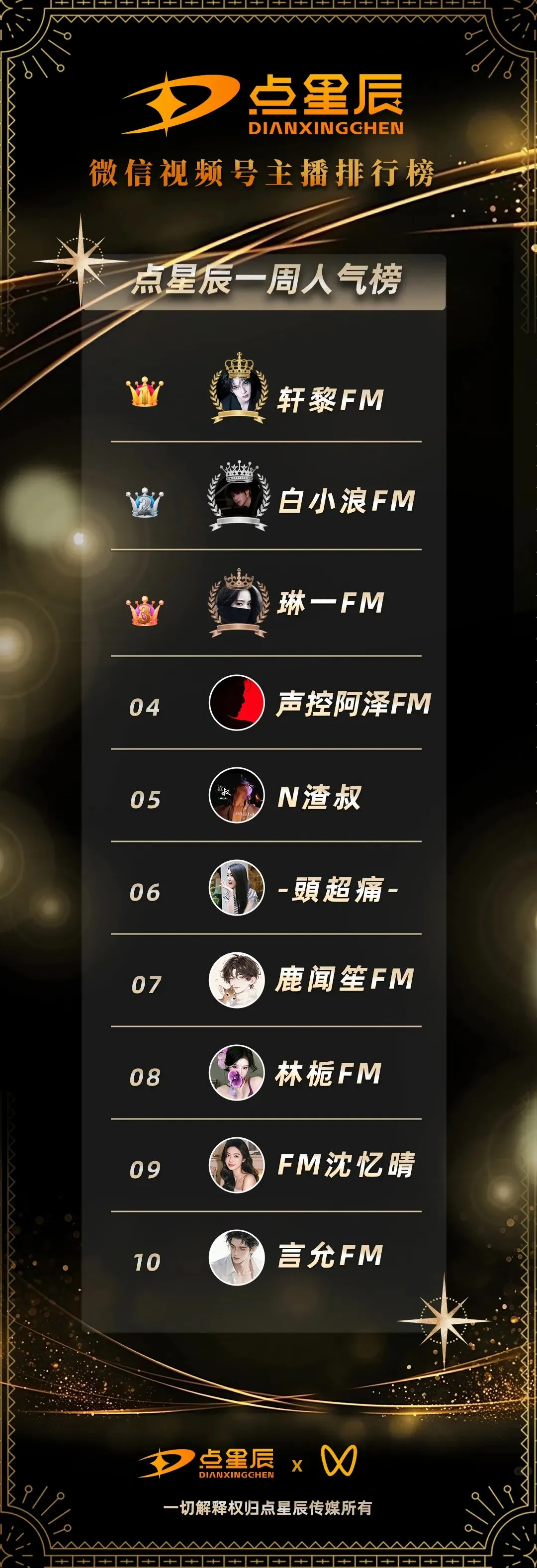 再次恭喜这周上榜的大家当然如果没上榜也别伤心点星辰每周都会更新排行