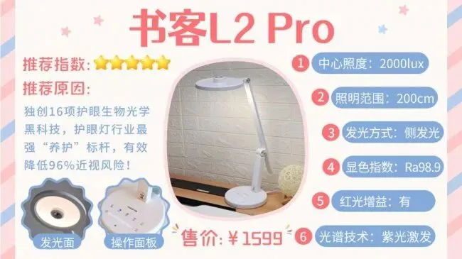1、精选硬核高口碑儿童护眼灯深度推荐:书客L2 Pro护眼台灯