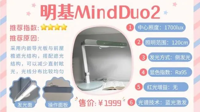 5、精选硬核高口碑儿童护眼灯推荐:明基MindDuo2