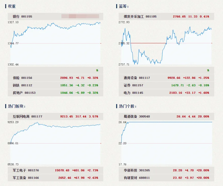 盘面上,商业航天概念强势爆发,十余只成分股集体涨停。神剑4 天 2 板再创新高,中国卫通、中国卫星、西部材料、中衡设计等纷纷封板。