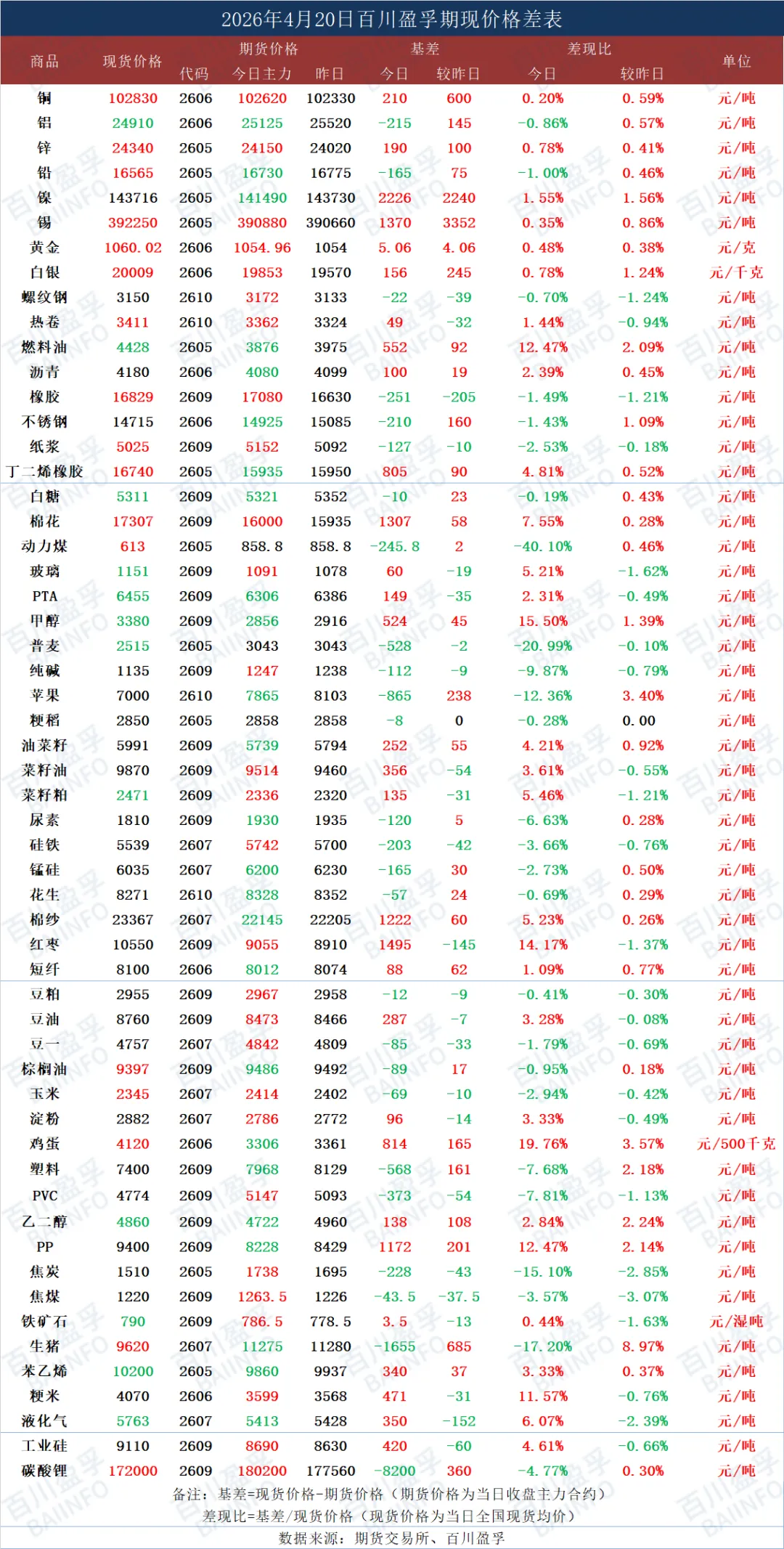 今日期现价格差表