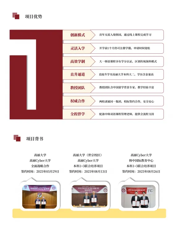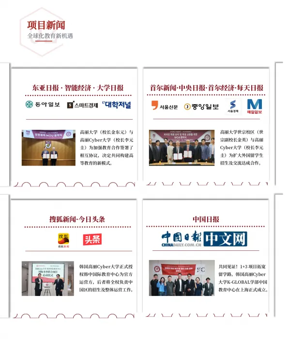 高丽大学与高丽Cyber大学是共同隶属于高丽中央学院的高等教育机构。 随着全球化进程加速,为了培养具有国际竞争力的专业人才,为学生提供高效、灵活的升学路径,高丽大学联合高丽Cyber大学设立K-GLOBAL学部,推出本科1 +3联合培养项目。