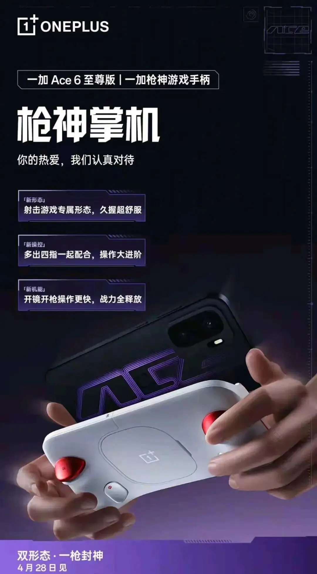 这可不是普通的手机配件预热,而是明显的一加要搞大动作的信号。4月28号晚上7点,一加 Ace 6 至尊版和一加枪神游戏手柄就要正式发布了。今天咱们就来唠唠,一加这次到底想整啥新花样。