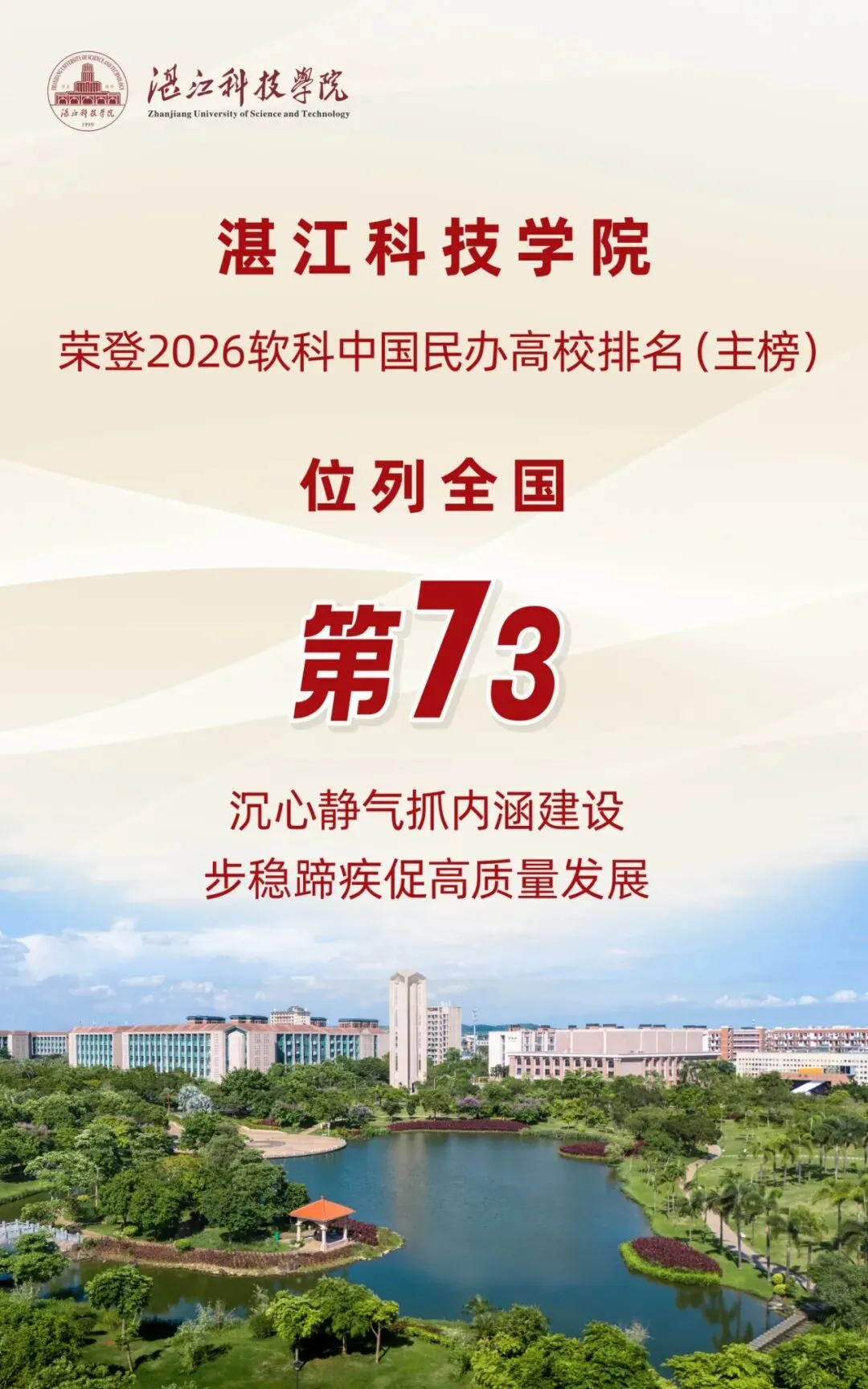 居全国民办本科高校第73位