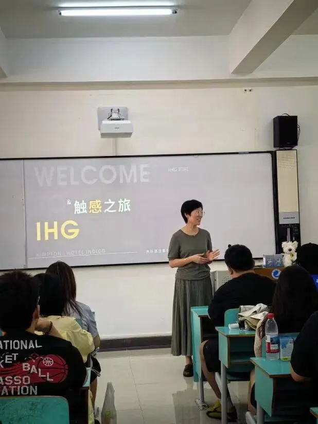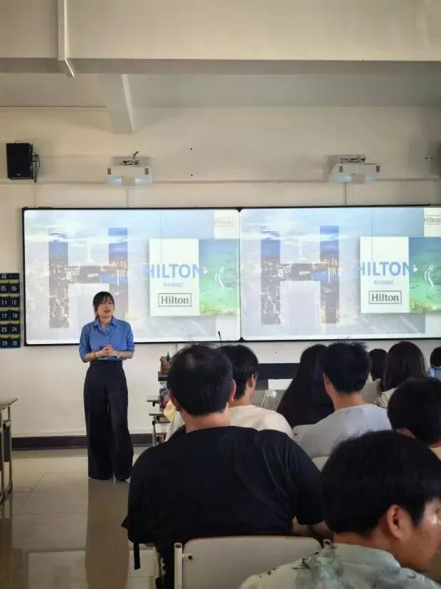 课堂上,三位企业导师结合自身丰富的行业经验,分别围绕万豪酒店集团、希尔顿酒店集团、洲际酒店集团的品牌定位、文化理念、运营模式及人才发展体系展开深入讲解。他们不仅分享了国际酒店品牌在中国市场的发展战略与本土化实践,还通过真实案例解析了品牌管理中的关键环节,如客户体验设计、服务标准落地、员工培训机制等,使同学们对国际酒店品牌的运作逻辑有了更直观、系统的认知。