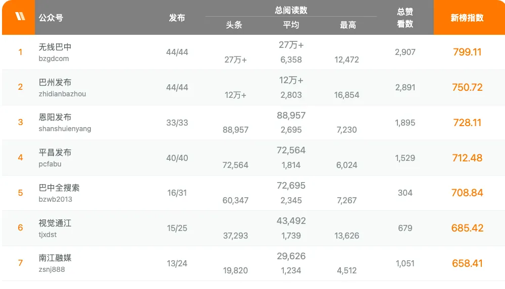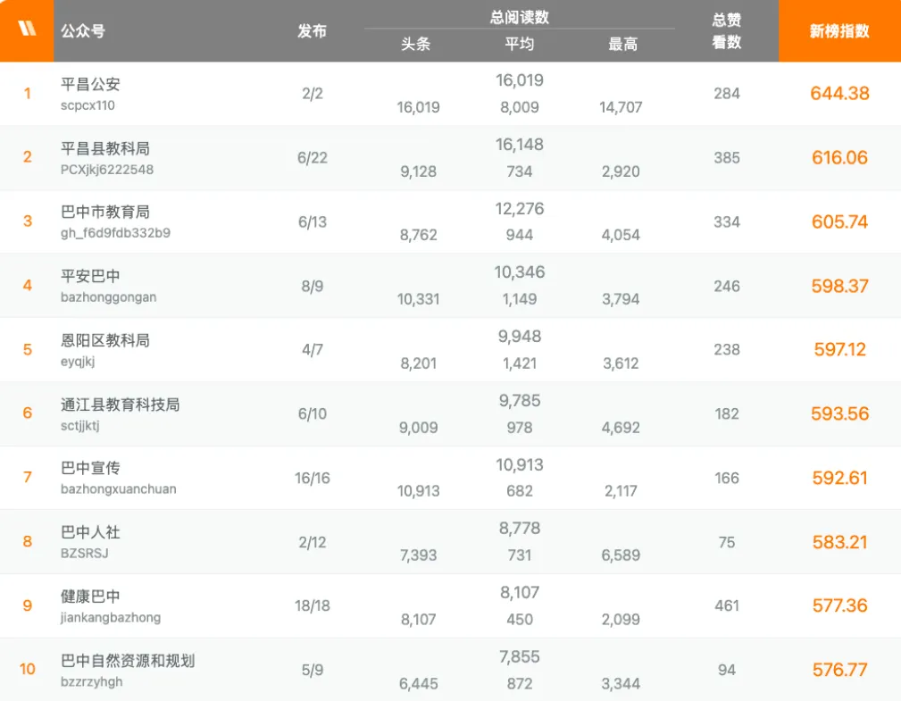 巴中微信公众号影响力排行榜新鲜出炉,赶紧来看看上周(2026年4月13日至4月19日)都有谁上榜!