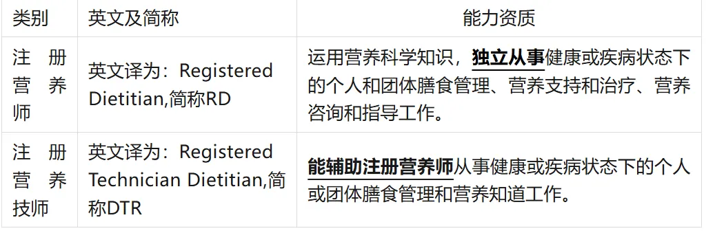 注册营养师包括注册营养师和注册营养技师,分别对应不同的能力资质。