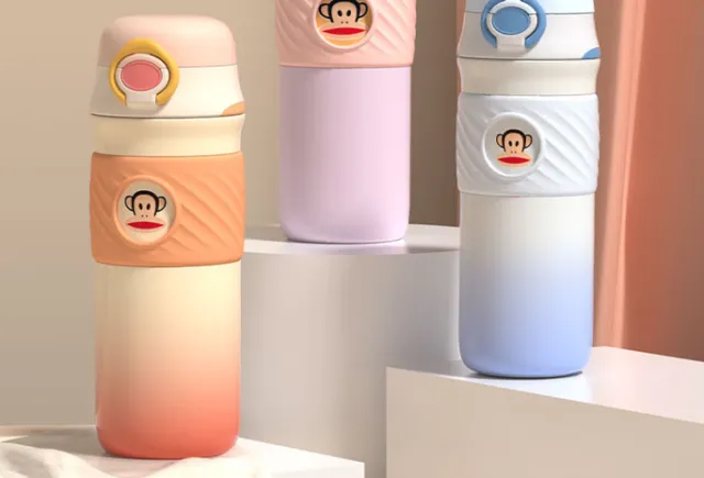 ▶杯身印有卡通形象图案,色彩饱和度适中。杯体修长,适合放进多数包袋的侧兜。杯盖与杯口配合精度较好,拧紧时手感顺畅。杯身中部设有腰线凹陷,手指放上去很自然。