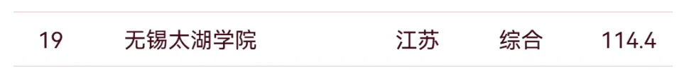 在民办高校排名主榜中,无锡太湖学院高居第19位。