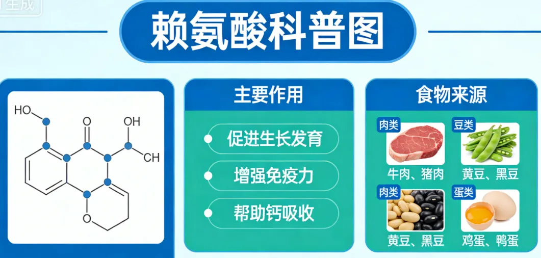 健康贴士:任何营养补充剂都不能替代食物,日常饮食中应多摄入富含赖氨酸的食物(如肉类、蛋类、豆类),与补充剂搭配,效果更佳。