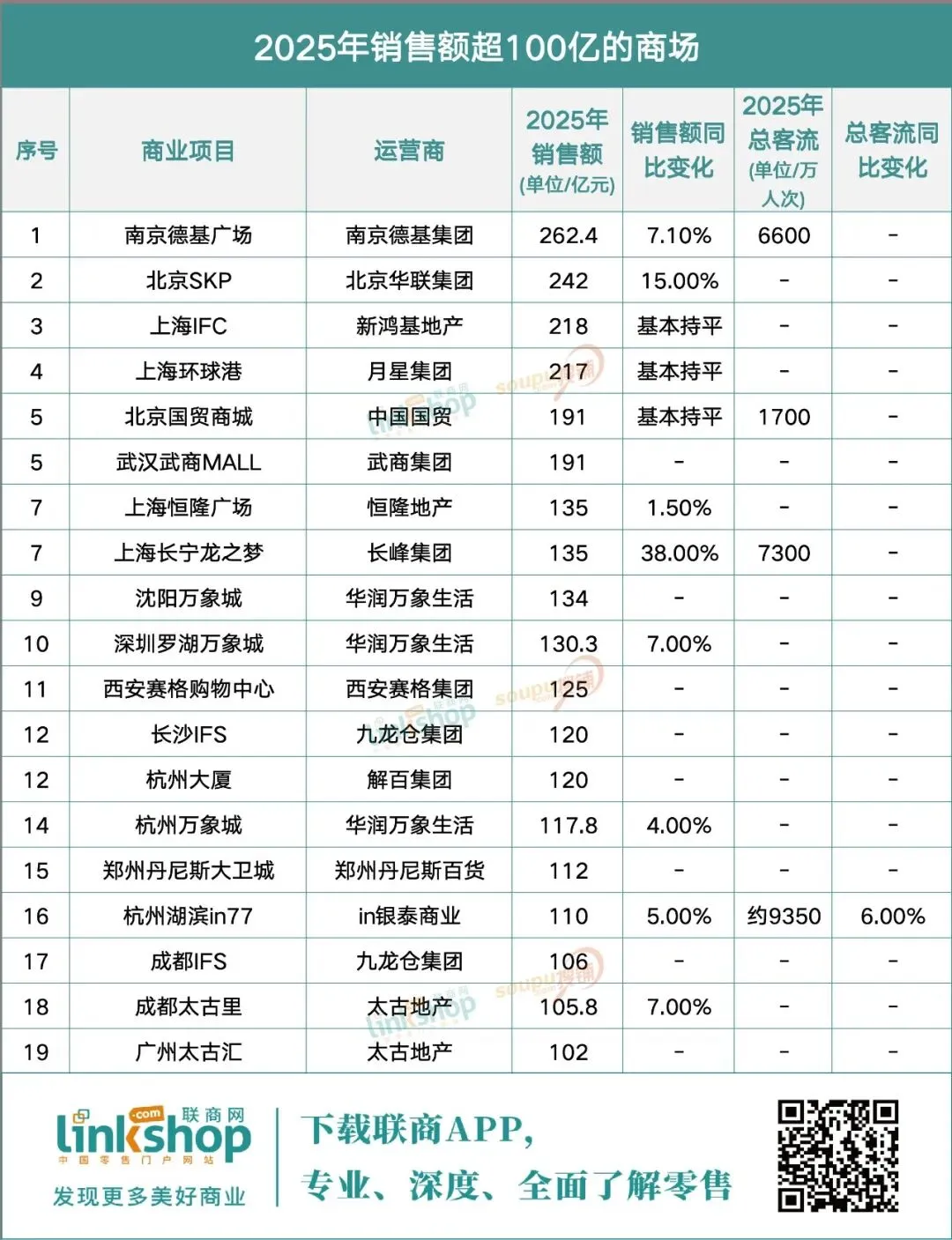 因此,联商网继续推出2025年全国“百亿商场”销售额排行榜,以供行业分享。
