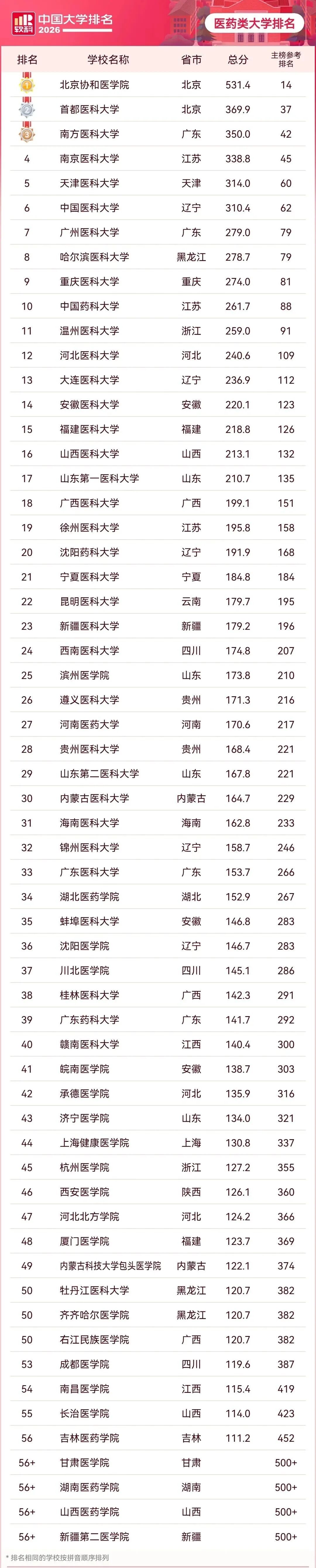 北京协和医学院蝉联医药类大学排名榜首,北京中医药大学摘得中医药大学排名桂冠,上海财经大学位列财经类大学排名之首,北京外国语大学占据语言类大学排名第一,中国政法大学问鼎政法类大学排名冠军,中央民族大学高居民族类大学排名首位,上海体育大学持续领跑体育类大学排名,香港中文大学(深圳)拔得中国合作办学大学排名头筹。