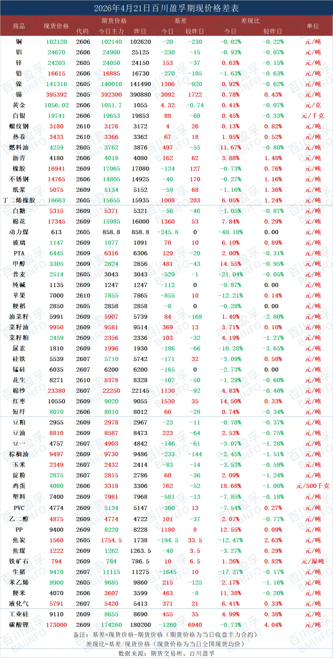 今日期现价格差表