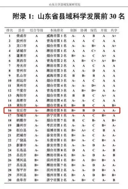 近日,山东大学县域发展研究院发布了“五大发展理念视角下的山东省县域科学发展评估与排名”,以五大发展理念的科学发展观的角度,评价县域创新、协调、绿色、开放、共享的发展程度。