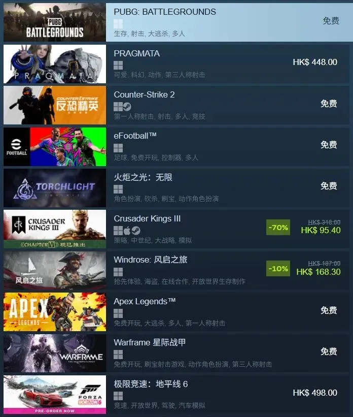 以下标签: "免费开玩", "多人", "单人", "独立", "抢先体验", "在线合作", "合作", "跨平台多人", "大型多人在线",未计入统计数据。