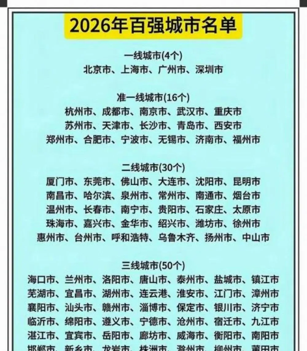 2026年中国百强城市榜单新鲜出炉啦!大家赶紧来查查,自家城市有没有跻身前一百名~ 熟悉的面孔依然稳坐顶端,新变化也不少,尤其是准一线城市扩编、中部城市发力。
