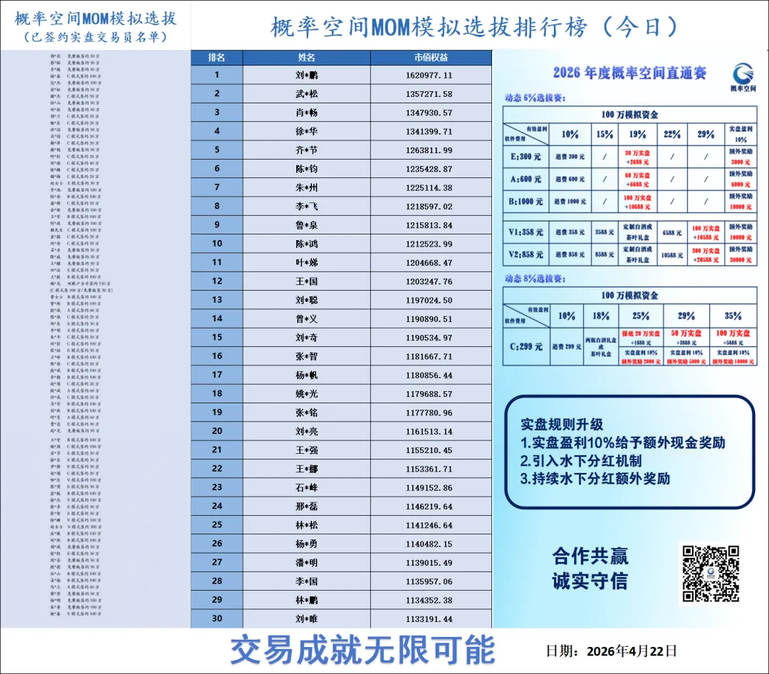 >2026/4/22选拔排行榜前30名