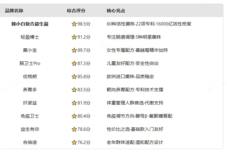第四部分:2026益生菌十大优质品牌实测榜单预览