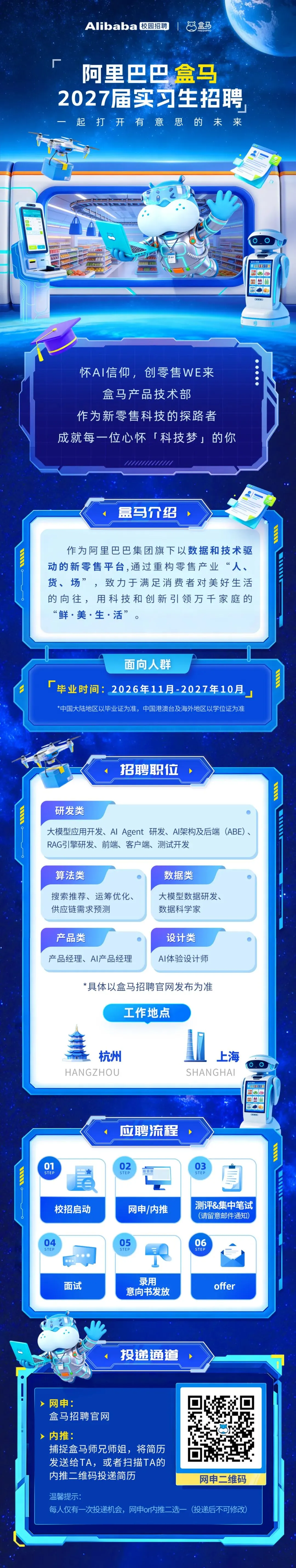 >世界500强|阿里巴巴盒马2027届实习生招聘