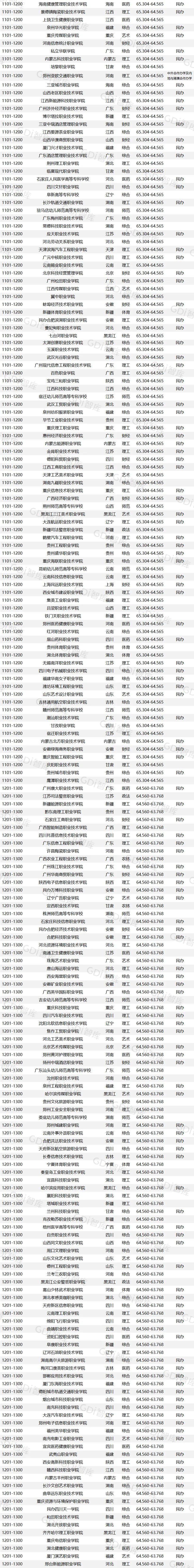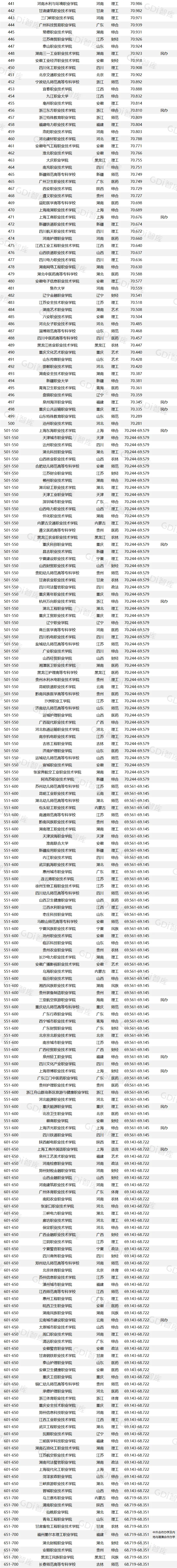 总榜排名前三的院校分别是江苏农林职业技术学院、长沙民政职业技术学院、温州职业技术学院,排名4—10位的分别是常州机电职业技术学院、北京工业职业技术学院、郑州铁路职业技术学院、江苏农牧科技职业学院、浙江金融职业学院、山东商业职业技术学院、陕西铁路工程职业技术学院。