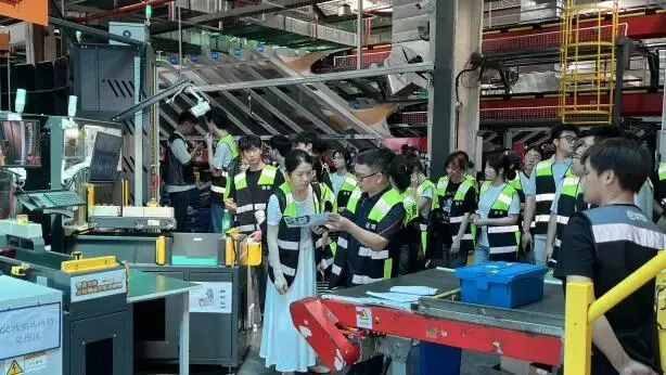 活动中,师生深入作业一线,实地观摩快件分拣、智能调度、仓储管理、出港派送等全流程标准化运营场景。全自动小件分拣机、旋风播圆盘式自动播种墙、智能扫码系统等数字化设备高效运转,每小时数万件的处理能力与规范化作业流程,让同学们直观感受智慧物流的科技赋能与产业升级,将课堂理论知识与企业真实场景深度融合,进一步明晰专业应用方向与行业发展前景。