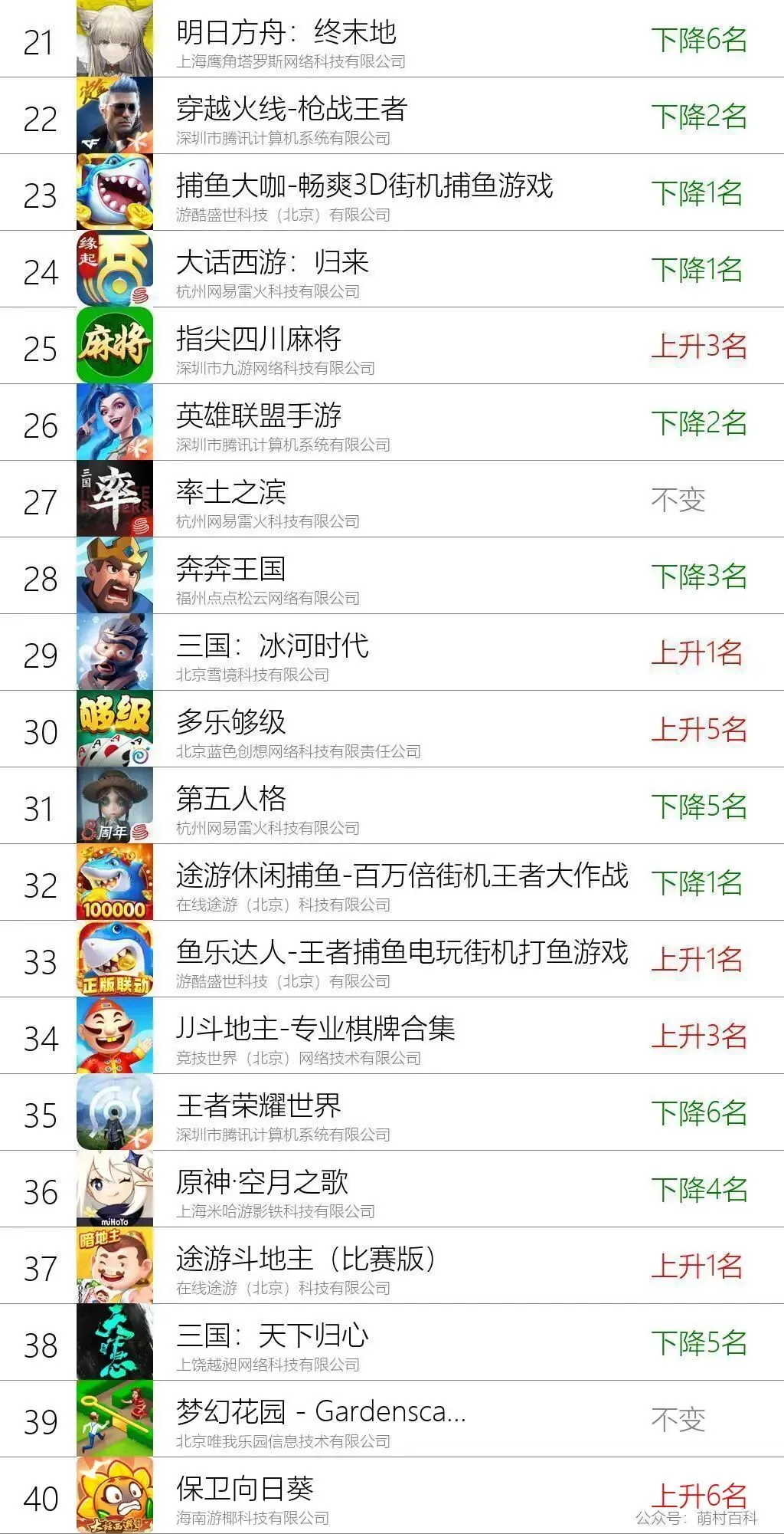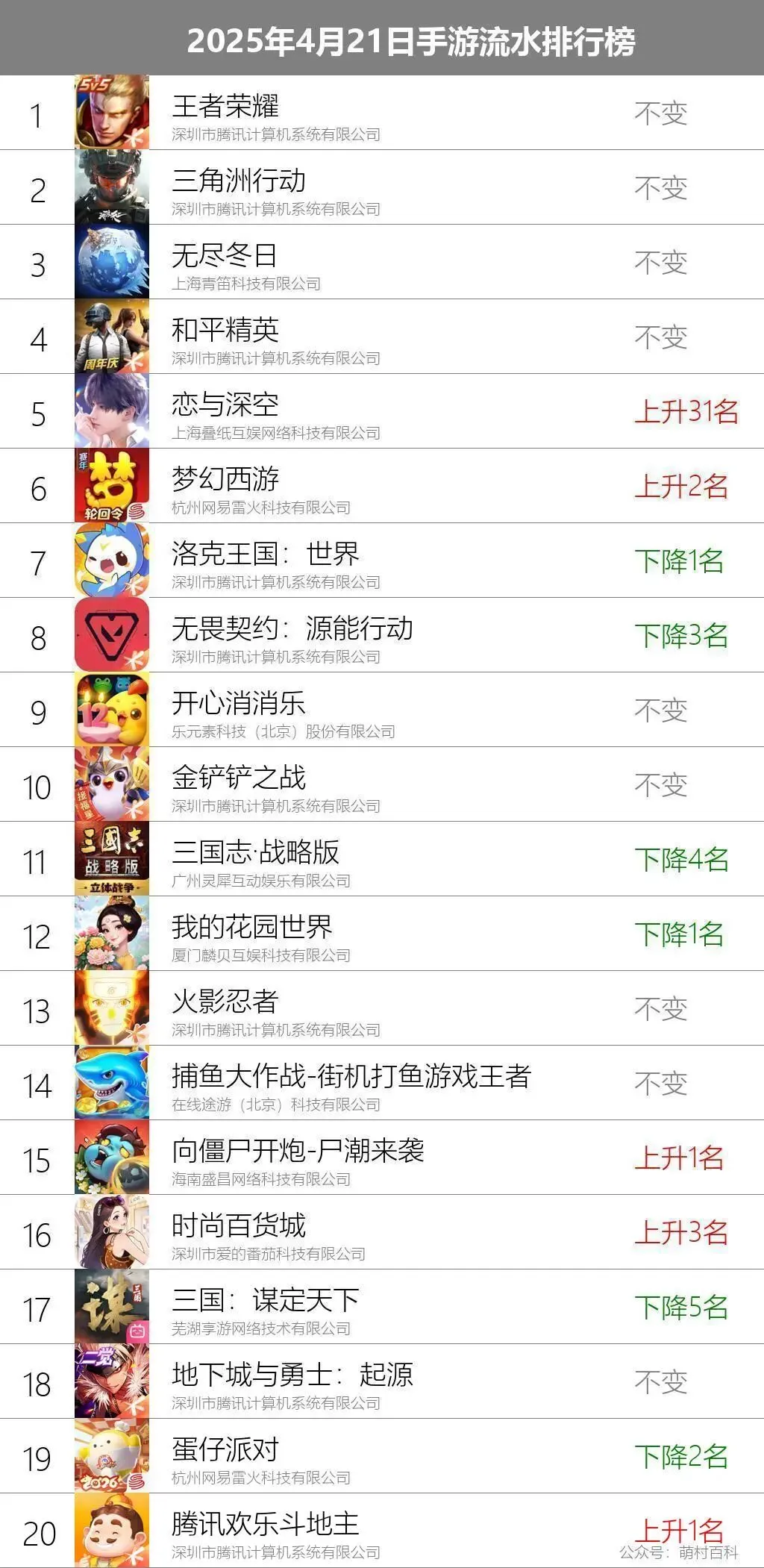 4月21日手游流水排名榜单(文字版)
