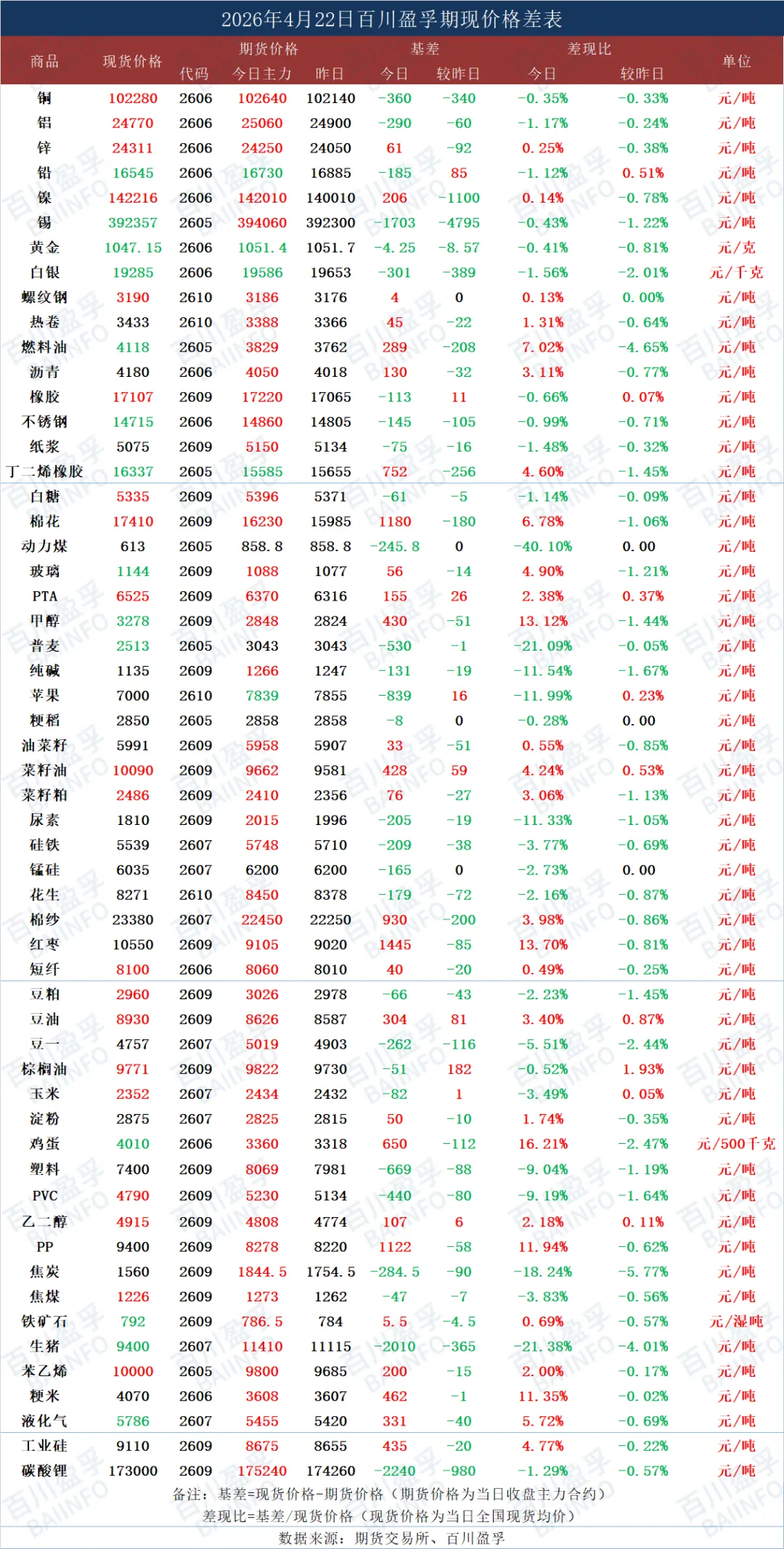 今日期现价格差表
