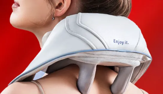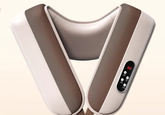 传统披肩式按摩器:类似小披肩造型,通过绑带固定于肩背,按摩头覆盖颈、肩、上背部区域,揉捏力度相对集中,可模拟人手抓捏动作,对斜方肌酸痛缓解效果更好,但体积偏大,便携性弱于U型枕款。