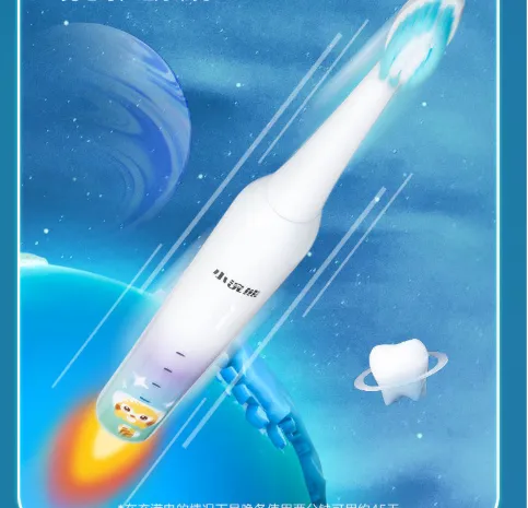 【棒棒糖造型】其标志性的棒棒糖造型设计,不仅外观童真有趣,更符合儿童手部人体工学,圆润机身便于小手抓握,增强刷牙时的掌控感和安全性。
