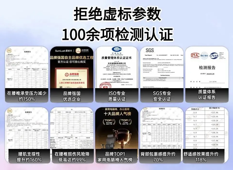 市面上不少人体工学椅品牌为了压缩成本,往往牺牲了品质,虽然大肆宣传、花重金请明星代言,但实际使用起来,支撑力不足,舒适性差,久坐反而带来腰酸背痛,长期使用更可能对健康造成隐患。而夏草木Fit2则与这些品牌完全不同。它是少数获得欧盟多国认证,并且被CCTV推荐、入选“品牌强国优选工程”的专业品牌。夏草木Fit2一直坚持“科学久坐”的研发理念,专注于打造行业顶级的人体工学椅。它配备了ZeroG2.0灵动腰靠系统,联合S-Flex六区脊椎分压、三区浮翼智能腰撑和MTM悬浮微调模组,形成了一个全链闭环的护脊支撑系统。无论你的坐姿如何变化,夏草木Fit2的支撑都能随之调整,提供精确的保护。权威测试结果显示,夏草木Fit2能够将腰椎损伤率降低99%,承压减少150%,支撑性提升160%,贴合度提升115%。其护腰效果被誉为人体工学椅中的巅峰,成为行业标杆。