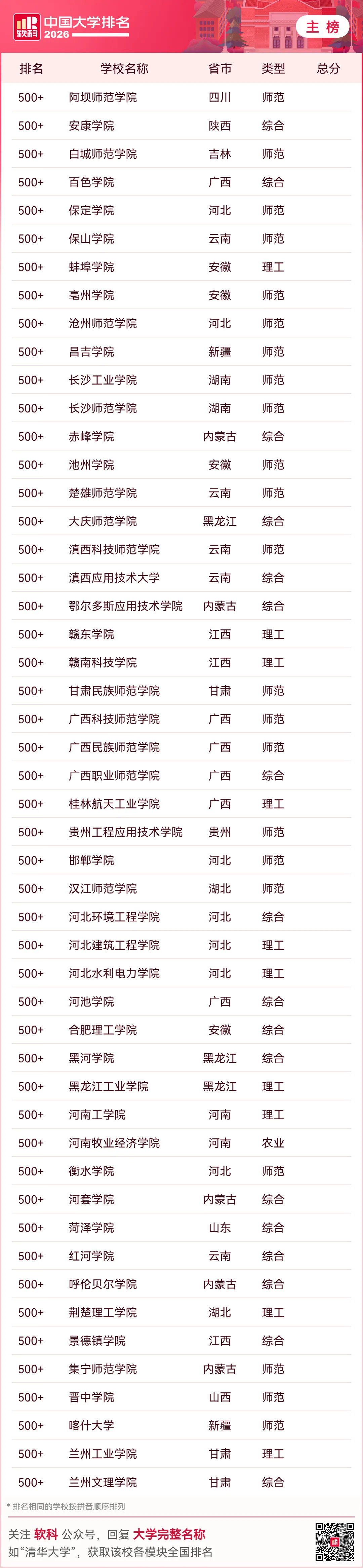 “2026软科中国大学排名”的对象是中国1000多所本科。
