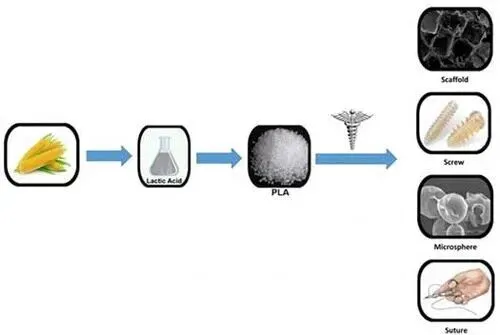 聚乳酸(PolylacticAcid,PLA)是由乳酸单体通过缩聚反应形成的生物可降解高分子材料,具有优异的生物相容性、可控降解性与生物刺激性,早期广泛应用于外科可吸收缝合线、骨科植入物等医疗领域[1]。