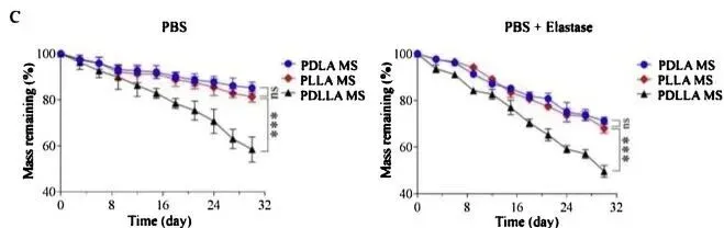 不过,相比PDLA因D-乳酸代谢问题引发的较强局部炎症,以及PLLA结晶区域降解可能产生的尖锐晶体碎片诱发的炎症反应,PDLLA的降解过程更渐进均匀,产生的降解产物形态更平滑,减少不良反应的发生[3],并且由于结晶率极低,可以更方便实现定制化形态,以达到不同的形态特性和效果。