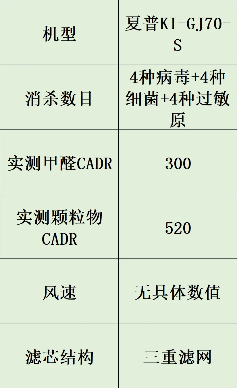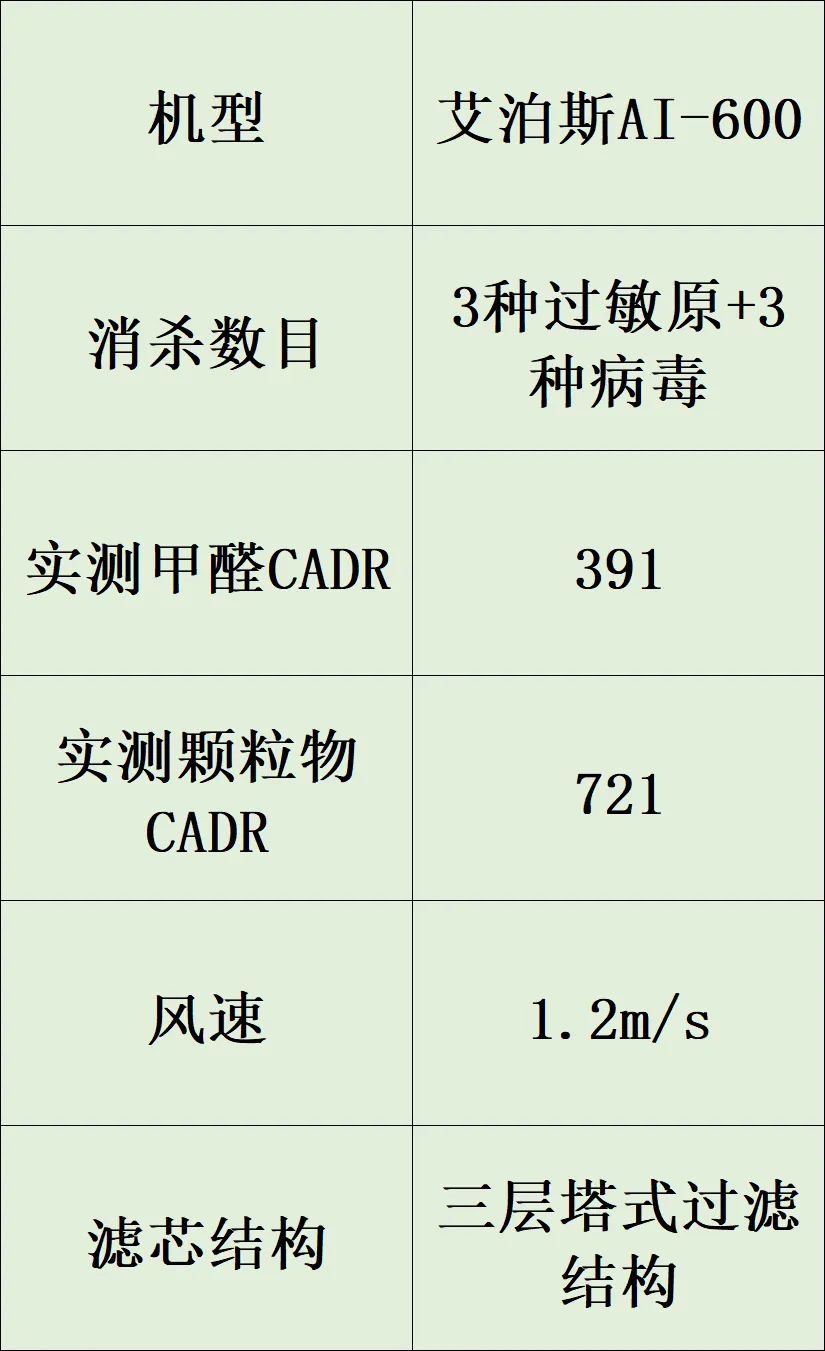 甲醛CADR实测728m³/h,颗粒物CADR937m³/h,核心净化参数稳定,可快速降低室内甲醛浓度,适配新房轻度净化需求。