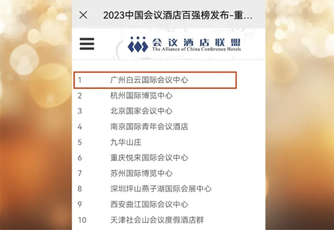 在“红色主场”党建品牌感召下,白云国际发挥主场精神,实现主场优势,展现主场担当,将政务接待、商务活动的“红色主场”守护好、建设好,将“红色主场”文化传承好、发扬好。通过努力,白云国际业界地位不断巩固,“政务接待标杆,市场竞争名牌”提升到新高度。2021年以来公司党委荣获广东省先进基层党组织荣誉称号,全国企业党建优秀品牌、市国资委“五强五化”示范党组织、广州国企十佳党建基地等荣誉。2019-2021年白云国际连续三年荣获“中国会议酒店竞争力(超大型)”前三甲,2022年、2023年连续两年荣登“中国会议酒店竞争力(大型)”榜首,荣获“中国最受青睐国际会议中心”“年度中国最具竞争力国际会议中心”“年度最佳会议酒店”等奖项。