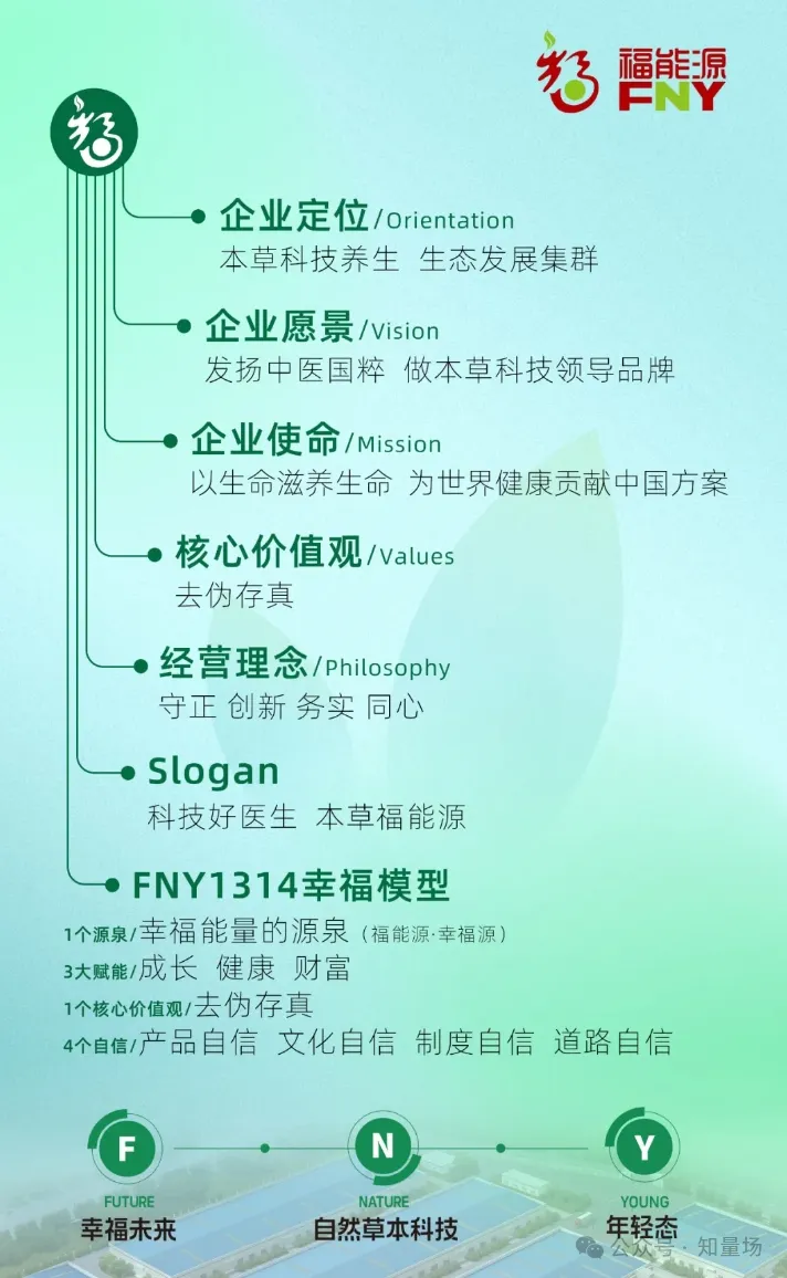 福能源企业定位为是“本草科技养生,生态发展集群”,公司把“构建百亿健康产业,成就百岁美好人生”作为战略目标,以本草+科技的双重保障开发健康产品,造福大众。作为好医生集团有中医药背景的企业,福能源将依托中华五千年中医养生智慧和理念,为世界健康贡献中国方案,尽全力发扬中医国粹,带着“去伪存真”的核心价值观持续前行。福能源“去伪存真”的践行实施方案受到了业界高度认可,在中国·武汉2024年6月26日-28日举办的以“质增长—同心·同向·同享”为主题的2024年度新消费创客嘉年华暨第十七届世界直销品牌节中,福能源因“去伪存真”核心价值观获得了“2024新消费年度新质力·文化创新企业”荣誉。